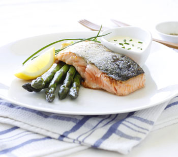 - Spoon into small dipping cups and serve alongside the crispy skinned salmon and asparagus.